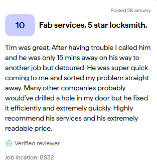 Hi, I’m Timur – but you can call me Tim. Originally from Latvia, I’ve been living in the UK since 2004 and have over 10 years of experience in the locksmith industry. I provide fast, reliable, and professional help with all types of locks, keys, and security issues. From emergency lockouts and lock changes to door alignment, repairs, and fresh installations – I’ve got you covered. I also repair uPVC, composite, patio, sliding, and bifold doors, plus windows. This is a family-run business, so you’ll always deal directly with a professional. No call-out fees, no hidden charges, and all new parts come with a 1-year warranty. For a fast response and free quote, message me on WhatsApp.